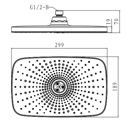 • Large rectangular rain shower head for full-body coverage